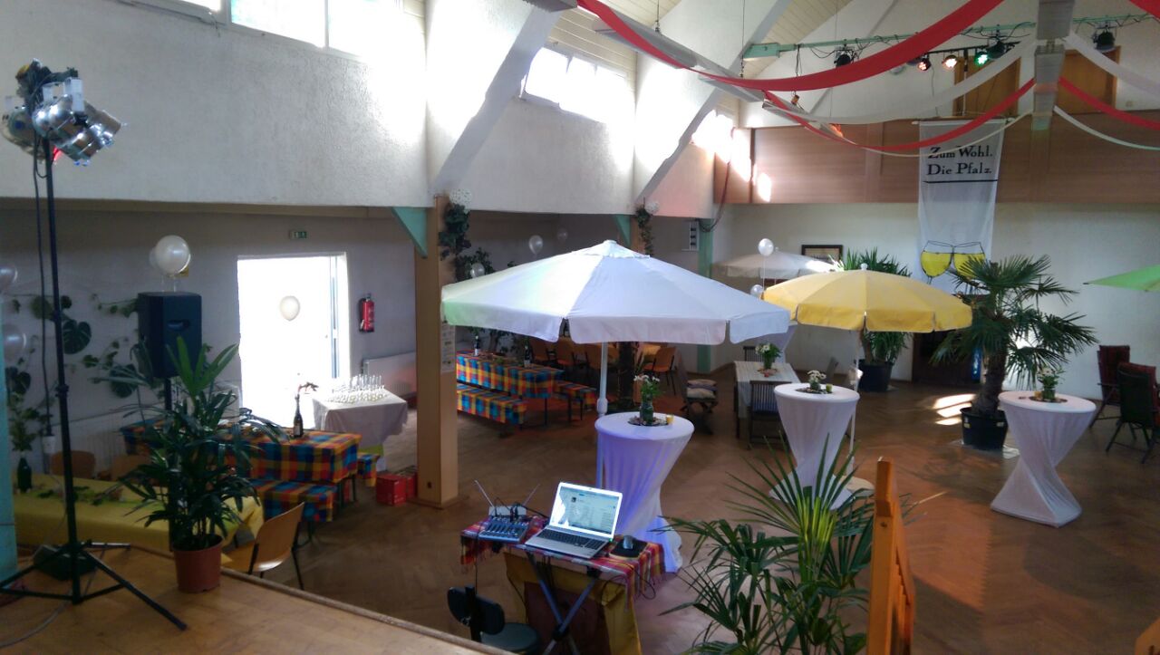 Der TuS Flomersheim bietet eine großzügige Halle mit Bühne einschl. Nebenräumen zur Vermietung.